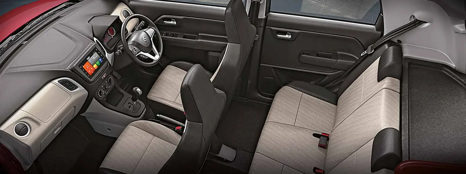 The Maruti Suzuki Wagon R offers a roomy interior with excellent headroom and smart storage, making it ideal for families and daily commuting.